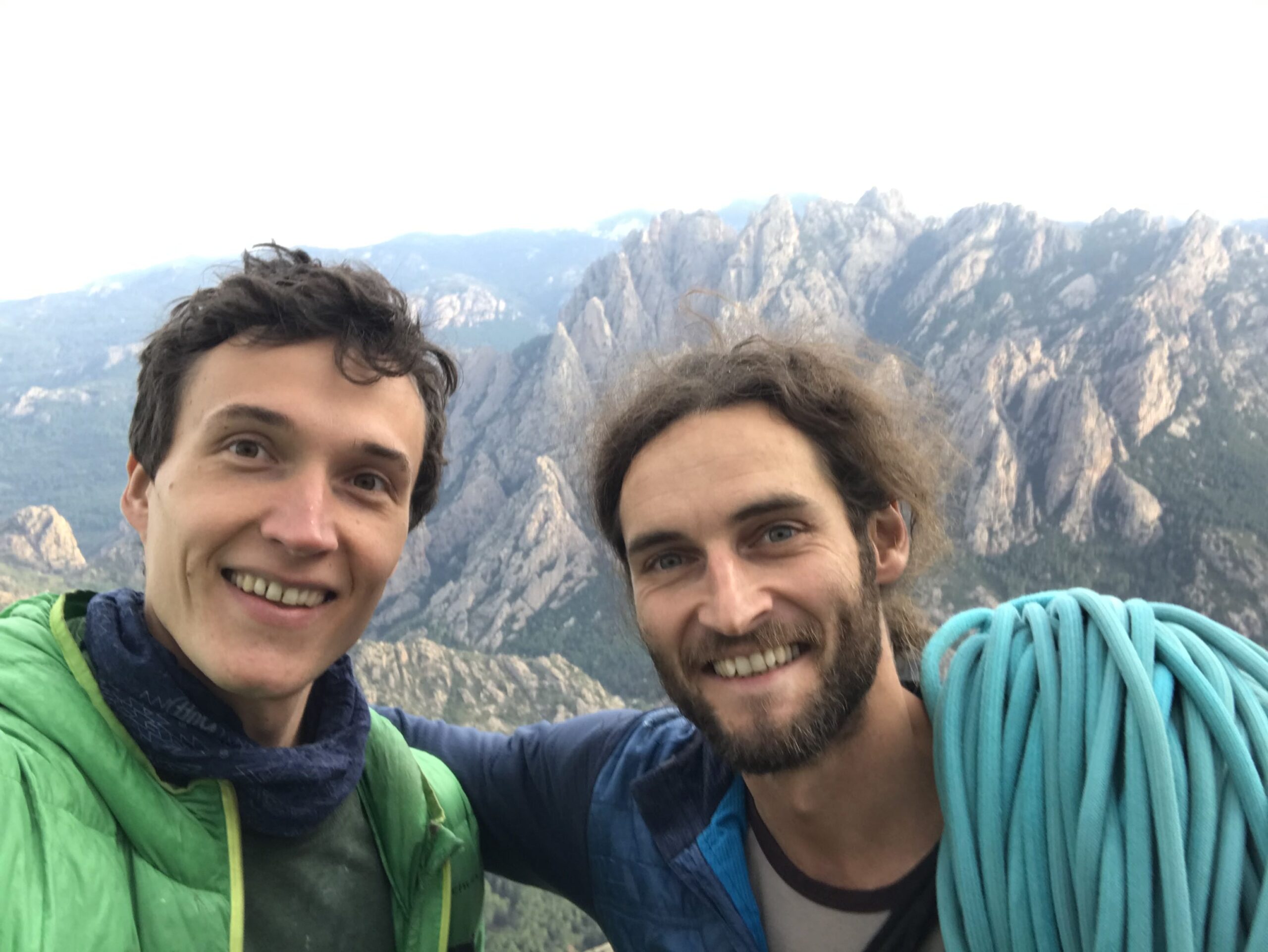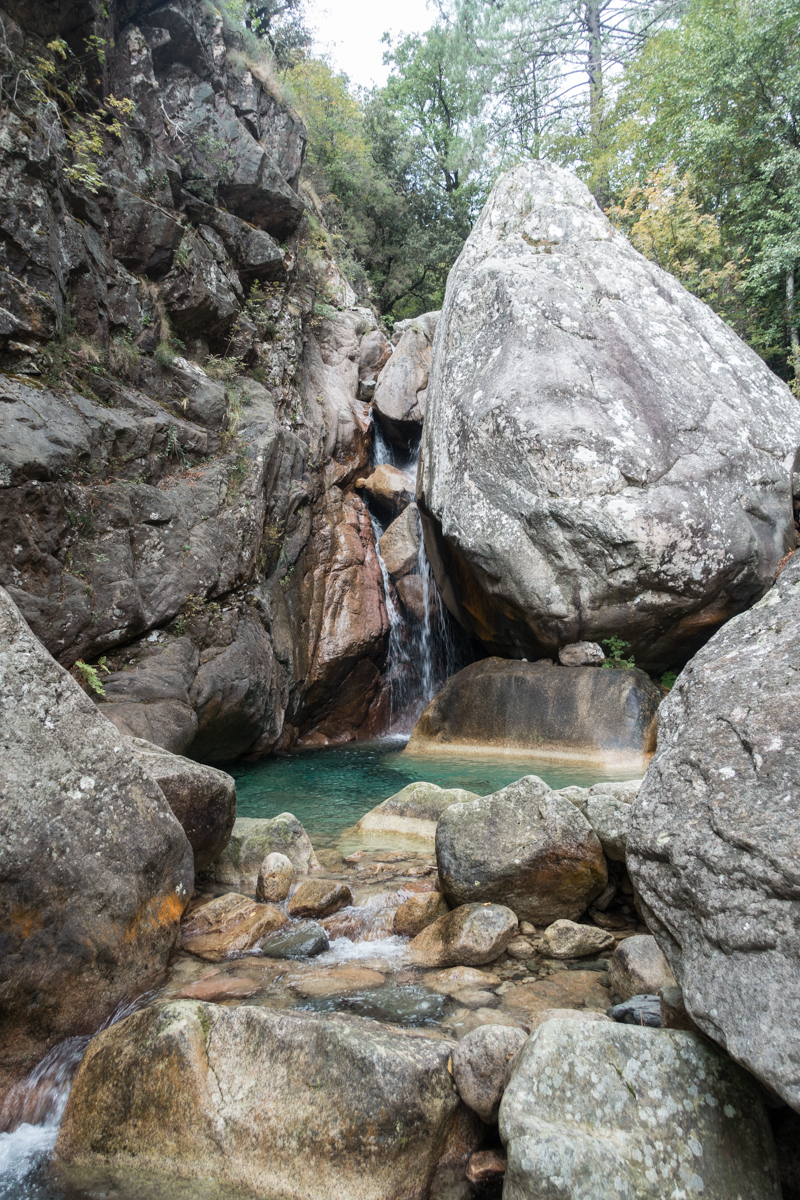 Von Bastia noch etwa zwei Stunden Fahrt und wir sind in der Bavella. Es ist schon stockdunkel und ich kann es kaum erwarten, bei Tageslicht endlich die Kulisse um uns zu sehen. Ich sollte nicht enttäuscht werden. Aus der Schiebetür des Busses tut sich ein Panorama aus Granitnadeln, durchlöchert von Tafoni, auf und dazwischen graben sich azurblaue Flüsse durch Canyons. Wir müssen dort rauf, sofort! Schnell noch eine für nicht-Italiener normalerweise letale Dosis Espressi runtergeschlungen und los gehts. Das Ziel ist klar – ohne Umwege zur Delicatessen!